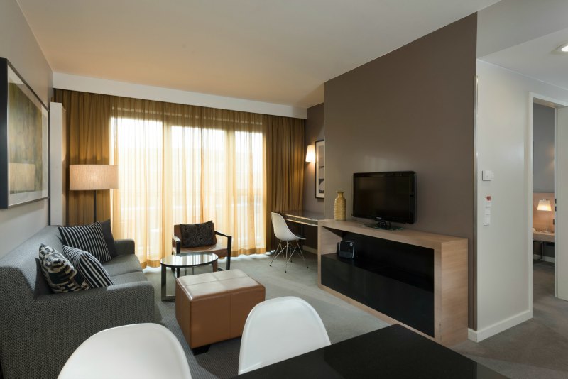 Wohnbereich im Apartment-Zimmer – die Couch kann für Kinder ausgeklappt werden – Foto (c) TFE Hotels