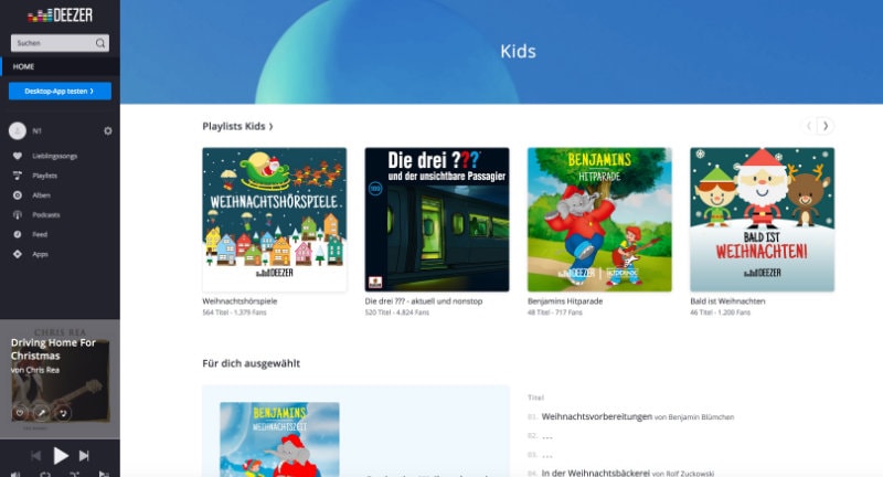 Kinderbereich bei Deezer für Kinder unter 12 Jahren