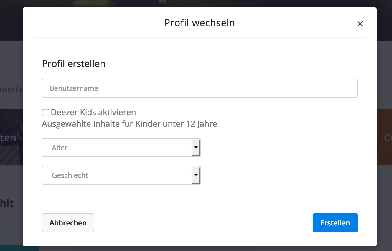 Anlegen der Deezer Profile für Kinder unter 12 Jahren