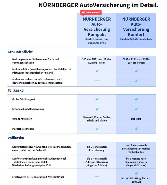 Details zur Autoversicherung bei der NÜRNBERGER