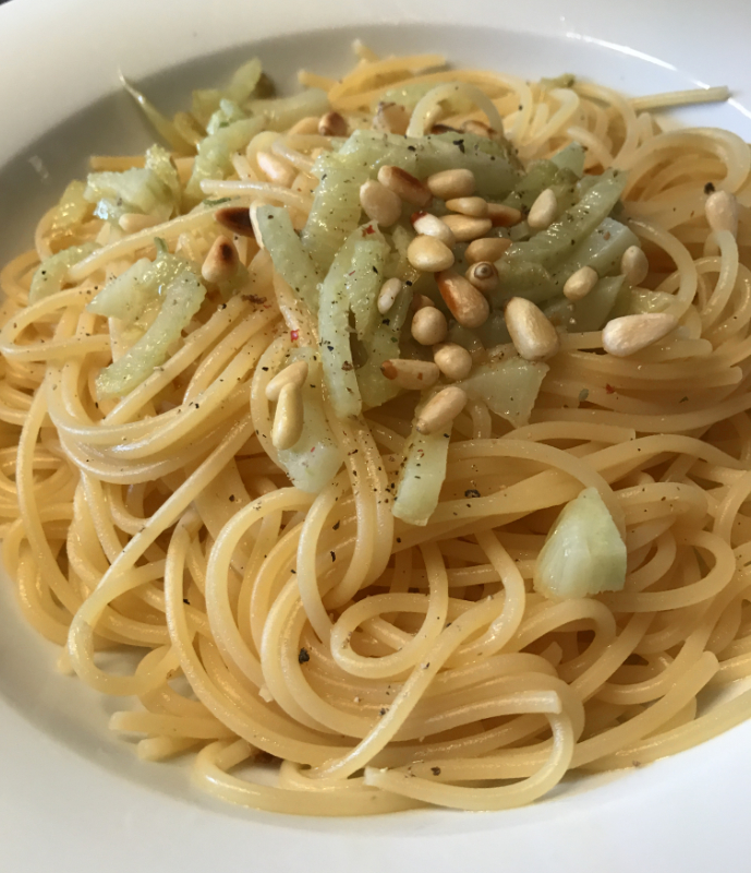 Spaghetti mit Fenchel, Pinienkernen und Trüffel-Öl