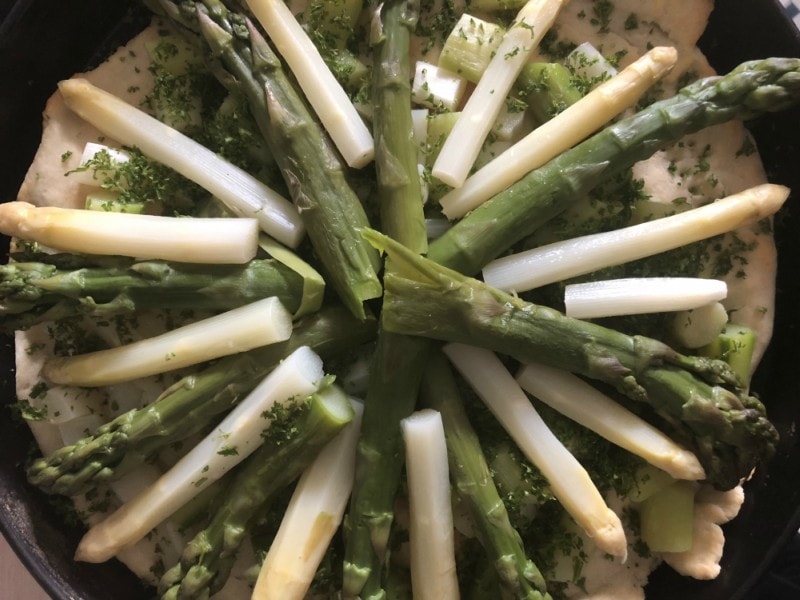 Spargel kreisförmig in der Quiche Form auslegen